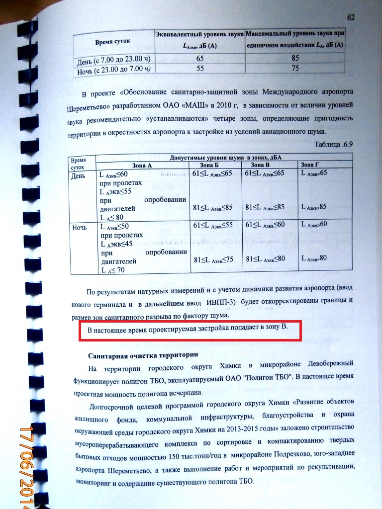 Проект планировки территории выполнила Ладыгина О. В. (руководитель проекта, центральный научно-исследовательский и проектный институт по градостроительству Российской академии архитектуры и строительных наук (ЦНИИП градостроительства РААСН), которая фальсифицировала исходные данные. В разделе "Акустическая экология" указала: "В настоящее время проектируемая застройка попадает в зону "В".