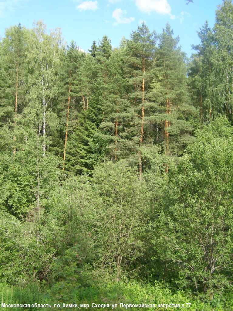 4 июля я сделал несколько фотографий ул. Первомайской, напротив д. 77 в мкр Сходня г.о. Химки Московской области. В ближайшее время весь лес, граничащий с ул. Первомайской, будет уничтожен ООО "Сходня", если не принять экстренные меры.