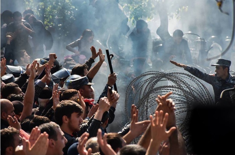 Никол Пашинян (лидер оппозиционной партии Елк, выступающей за евроинтеграцию Армении и занимающей в парламенте 9 мест из 105. - Прим. ред.) выдвинул свои требования: отставка Саргсяна и новые выборы, которые должны пройти честно. Пашинян призвал народ с этими требованиями выйти на улицы и идти в центр Еревана и других городов.