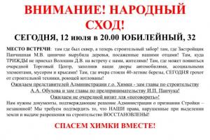 Сегодня в 20:00 в Химках состоится - уже четвертое по счету! - собрание против застройки сквера у дома 32 по Юбилейному проспекту....
