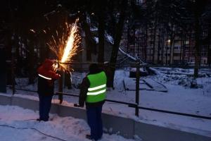 Итогом сегодняшних работ во 2-м Дачном переулке Сходни стали частичный демонтаж забора, огораживающего лес, и установка в двух сделанных проемах металлических ворот....