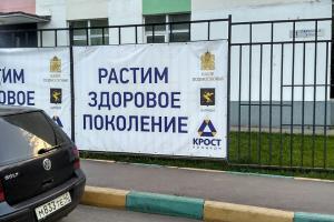На заборе детской поликлиники, на Парковой улице в Химках, появились плакаты со словами "РАСТИМ ЗДОРОВОЕ ПОКОЛЕНИЕ"....