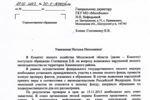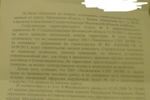 Сегодня поступил официальный ответ от Госадмтехнадзора Московской области по жалобе на незаконное строительство жилого комплекса на Ленинском проспекте, на берегу Канала им. Москвы и речки Химка....