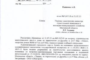 Очередное письмо замглавы администрации Химок Алексея Валова (если коротко - "застроим все, не сомневайтесь"):...