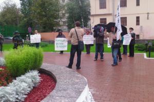 Сегодня утром, несмотря на тяжелые погодные условия (проливной дождь и пронизывающий ветер), прошла публичная акция перед Мособлдумой в Москве....