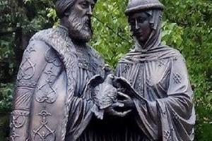 На площади перед химкинской администрацией появился памятник Святым Петру и Февронии Муромским....