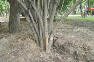 Комбинат по благоустройству и озеленению г.о. Химки все-таки обратил внимание на пересаженные в микрорайон деревья. Теперь их поливают и ухаживают за ними....