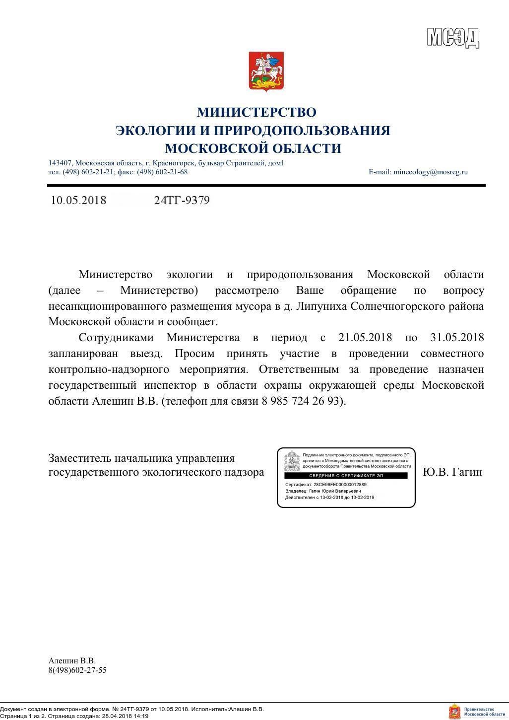 Минэкологии Московской области приглашает жителей Радищево, которые написали жалобы на несанкционированную свалку около Липунихи, принять участие в проверке. Выезд сотрудников министерства в Липуниху планируется с 21 по 31 мая, ответственной инспектор - Алешин В.В., тел. 8 985 724 26 93.