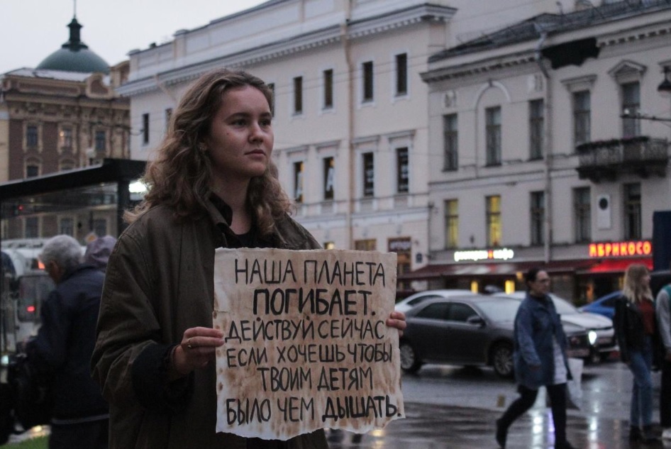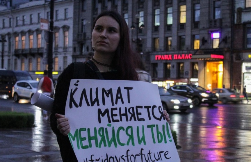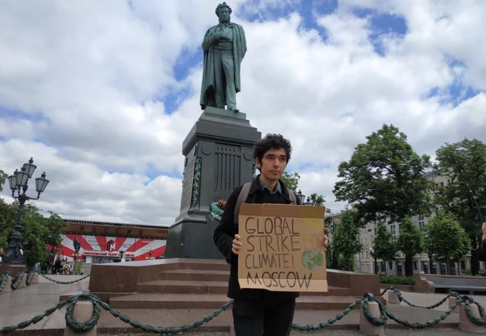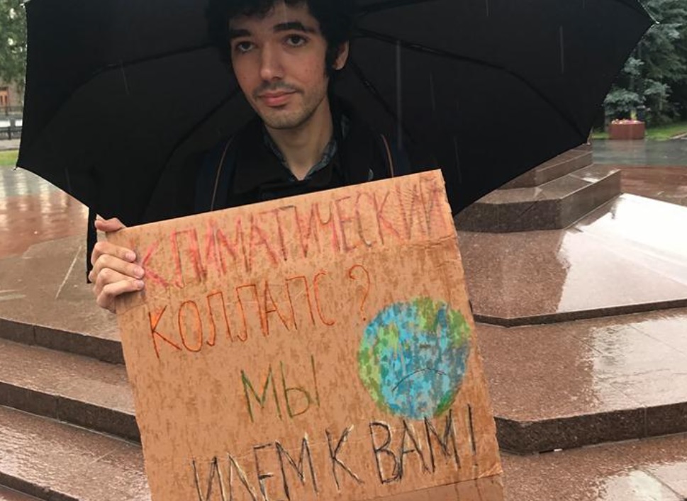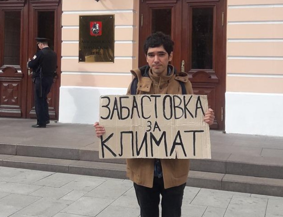 Уже несколько месяцев каждую пятницу (а зачастую - и в другие дни недели), в любую погоду активист Аршак Макичян выходит в центр Москвы - чаще всего на Пушкинскую площадь - с одиночным пикетом. На самодельных картонных плакатах написано по-английски и по-русски: "Забастовка за климат", "Глобальный удар по климату", "Климатический коллапс - войны, нищета, смерть" и так далее.