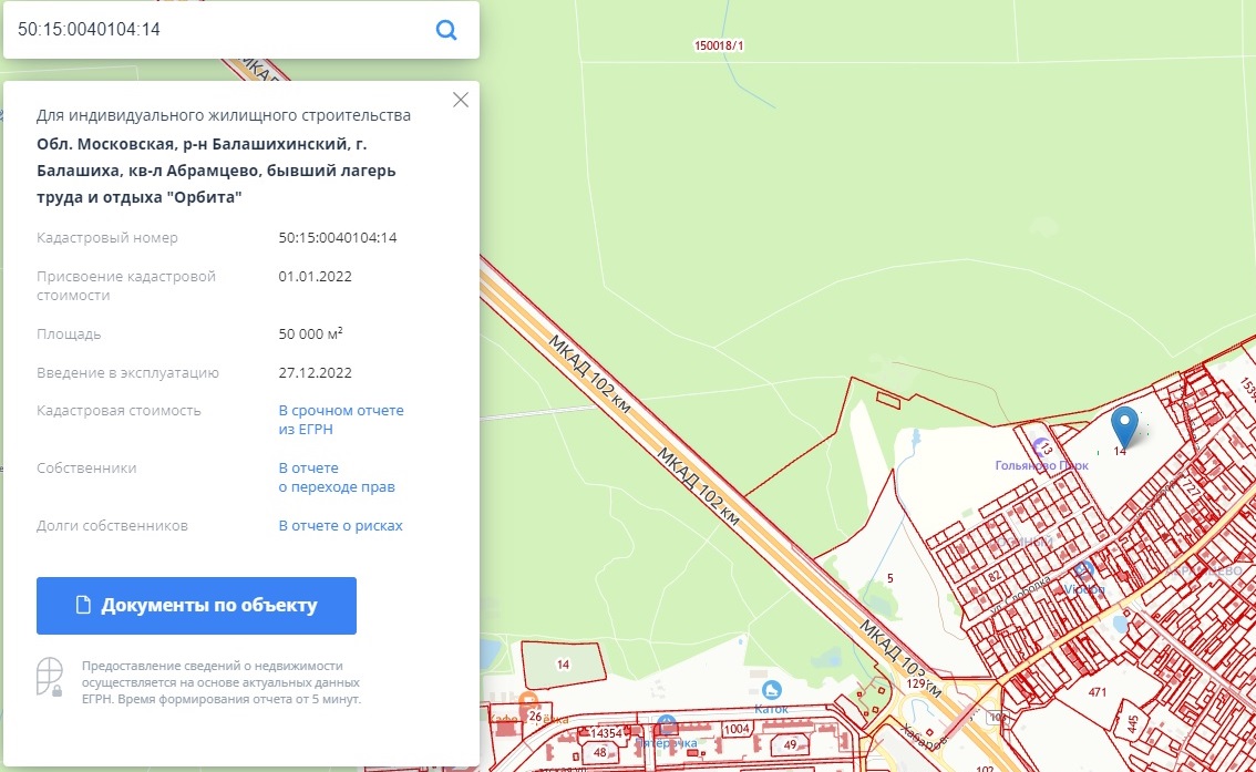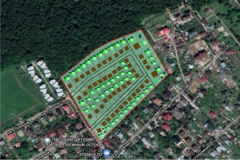 "Строительство 50 индивидуальных жилых домов, подъездных дорог и инженерных сетей. Место реализации: земельный участок с кадастровым номером 50:15:0040104:14, расположенный по адресу: Московская область, район Балашихинский, г. Балашиха, квартал Абрамцево, бывший лагерь труда и отдыха "Орбита".