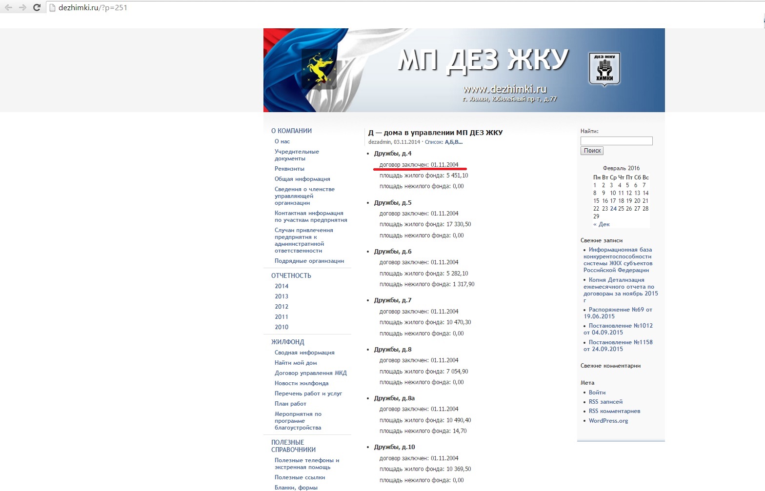 Между тем на сайте МП "ДЕЗ ЖКУ" указано, что договора с жильцами домов по ул. Дружбы якобы были заключены в 2004 году.