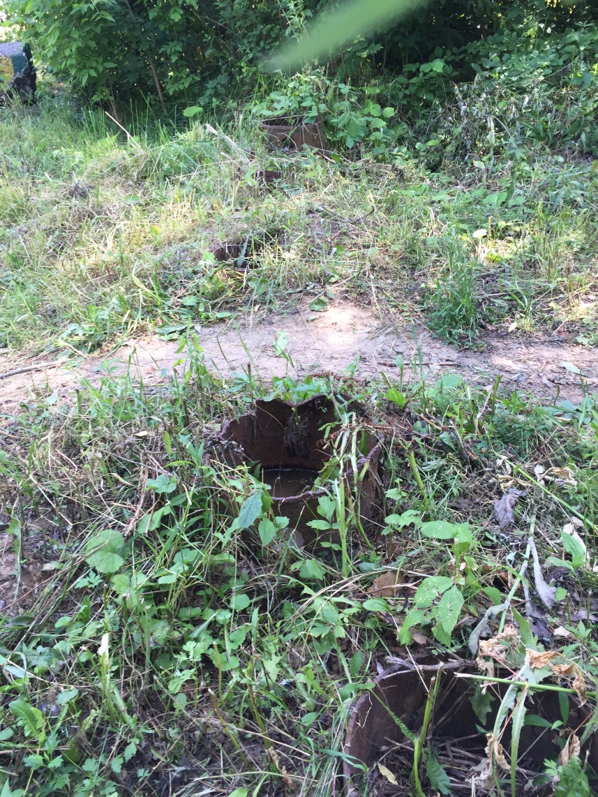 Также на участках были обнаружены вкрученные шпунты. Они предназначены для укрепления стенок и устройства котлована. Первый ряд шпунтов был расположен примерно в 10 метрах от забора храма, другой ряд находился с другой стороны, на границе участка. Судя по размеру, котлован планировался очень большой - и там можно было бы уместить жилой комплекс даже крупнее, чем ЖК "Дубки", построенный на поле напротив водозаборного узла.