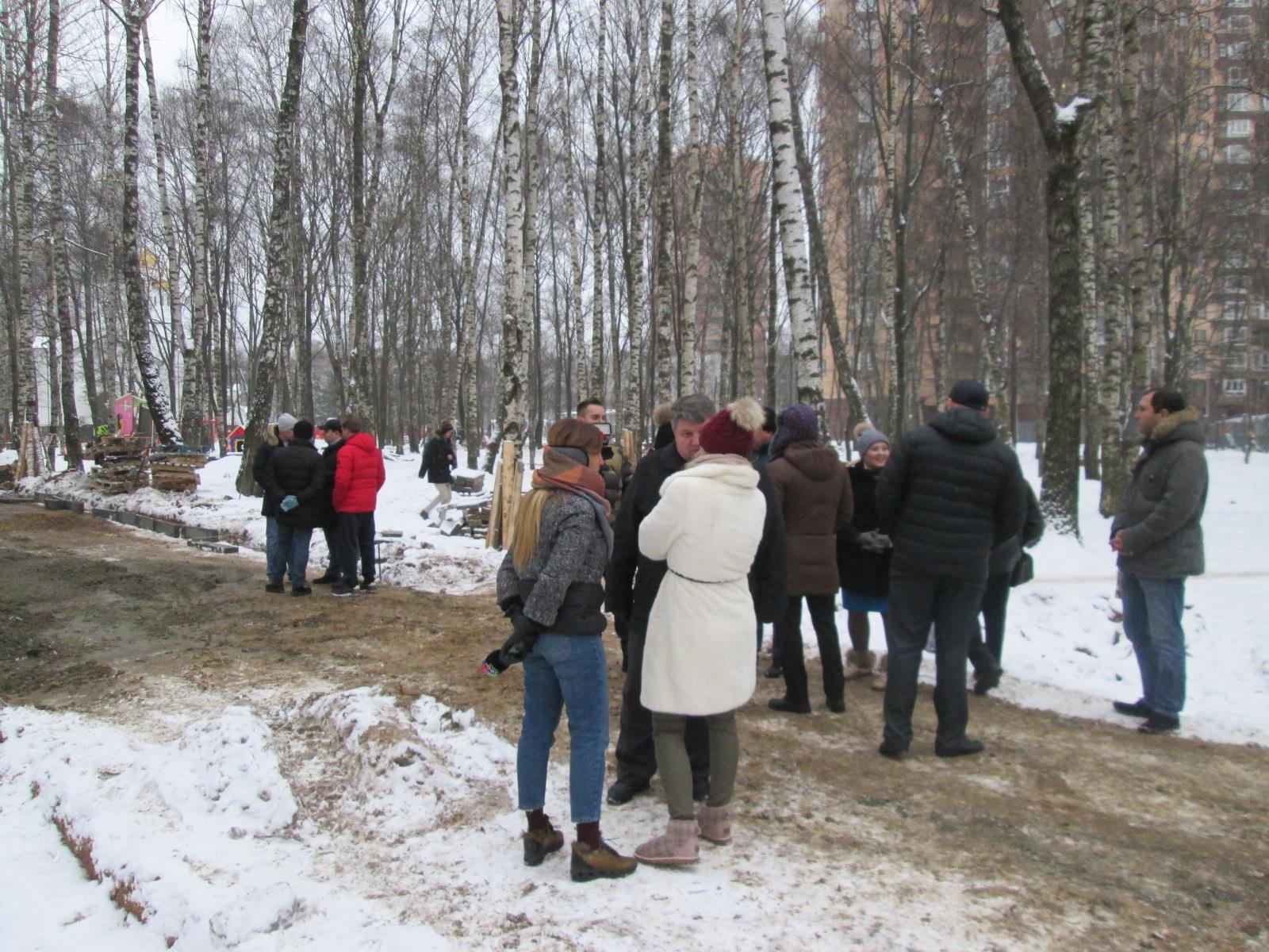 По дороге обратно активисты заметили мэра Химок Дмитрия Волошина, который вместе с другими чиновниками, в окружении телекамер, "проверял", как ведется благоустройство сквера рядом с парком. Как только мэр заметил защитников парка, он вместе со своей свитой постепенно скрылся. Охранники не подпустили к нему химчан, которые хотели подойти и пообщаться.