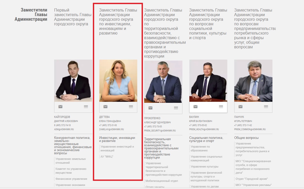 Елена Геннадьевна занимается в Химках вопросами инвестий и инноваций. На сайте администрации крайне скудная и явно недостаточная информация о ней.