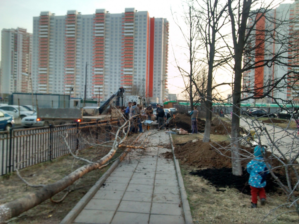 Активисты 5-го микрорайона поговорили с рабочими, которые привезли деревья, однако ничего внятного те не сказали - не представили никаких документов, не объяснили, почему будут сажать тополь, от которого у многих людей аллергия и который официально запрещен в Московской области.