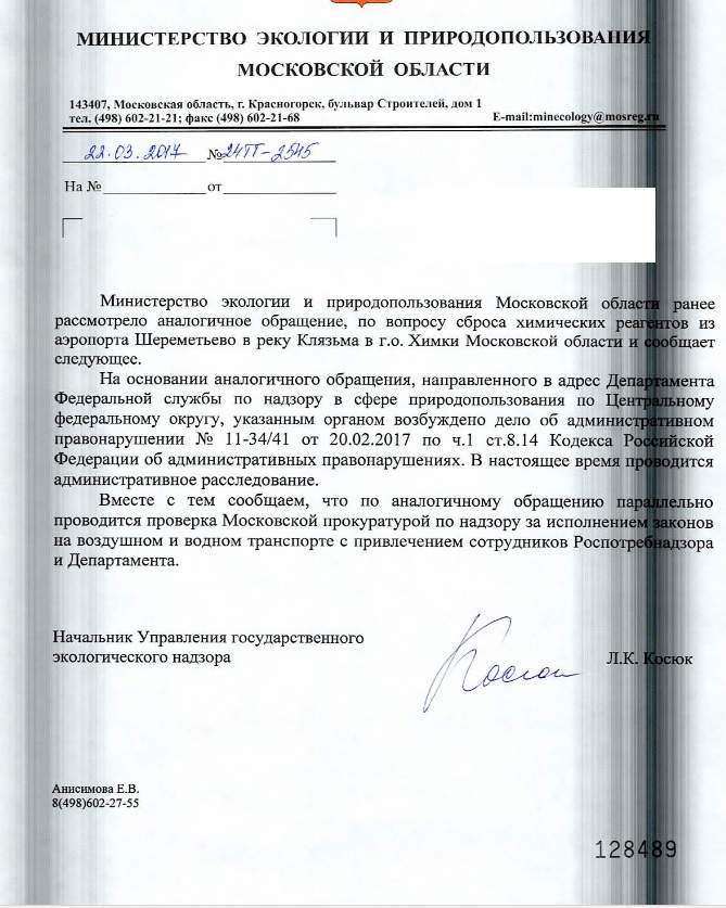 Напомним, что уже несколько лет жители Химок жалуются на резкий химический запах в районе "Города Набережных", вызванный сбросом реагентов в Воскресенский ручей, впадающий в Клязьму. В процессе проверки выяснилось, что в воде содержится повышенное количество аммиака. В реку в нарушение природоохранного законодательства сливаются отходы аэропорта Шереметьево, расположенного поблизости.