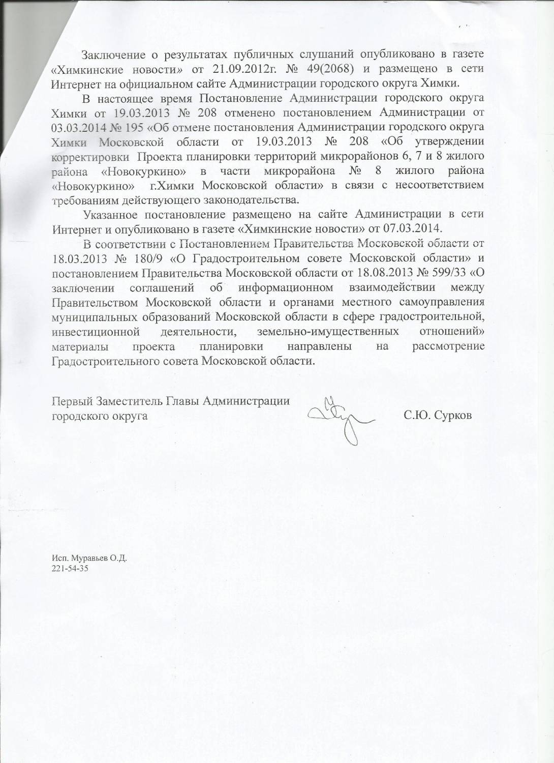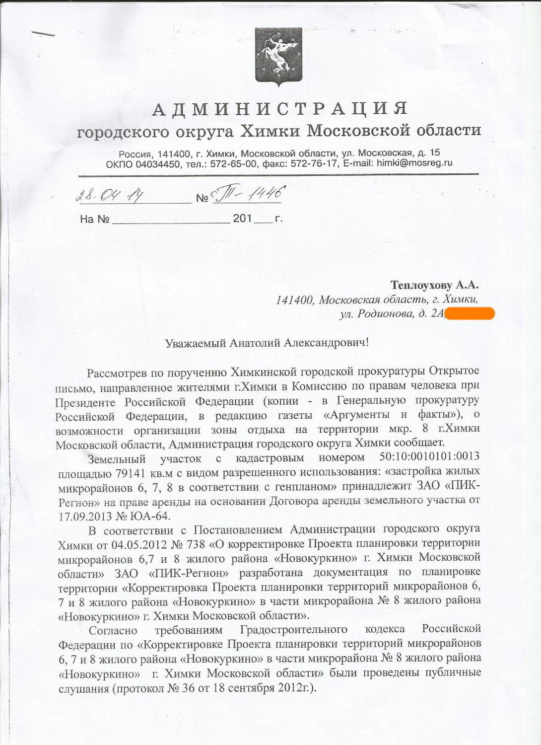 Защитники 8-го микрорайона от застройки "ПИК-регион" 25-этажными домами получили письмо от замглавы администрации Химок Сергея Суркова:
