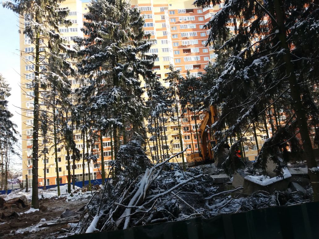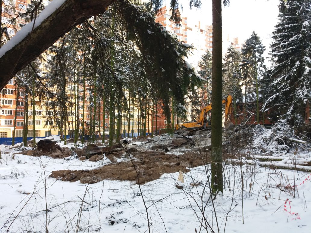 Сегодня рабочие ООО "Стройгрупп", которые готовят стройплощадку на месте лесного массива во 2-м Дачном переулке, были заняты сносом старого дома.