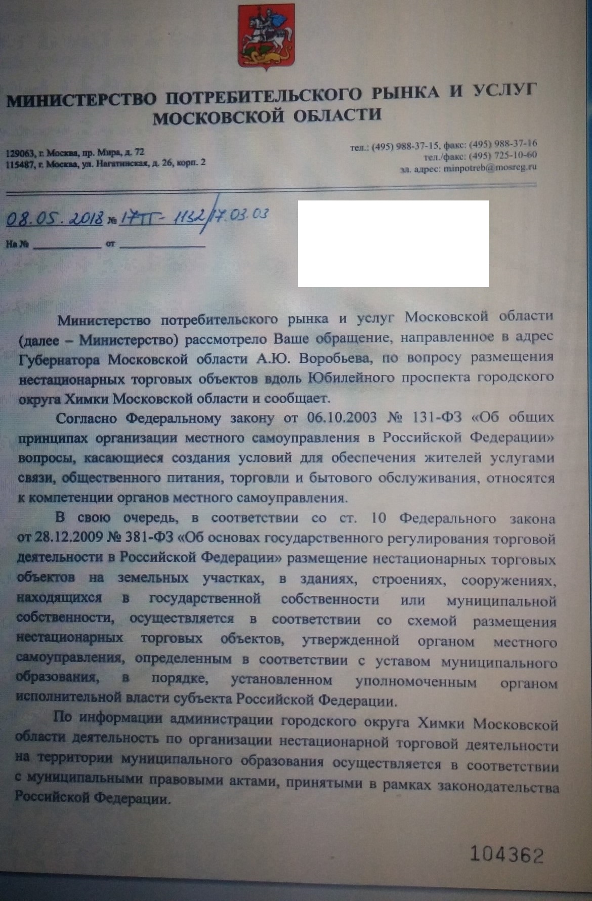 Обитателей соседних домов возмущает этот факт. "Я обращалась к губернатору Воробьёву с жалобой на происходящее на Юбилейном проспекте, - рассказывает местная жительница. - И посыпались в мой адрес отписки! С удивлением прочитала письмо областного министра потребрынка Посаженникова, где он указывает на то, что все, что делает местная власть, - законно!"