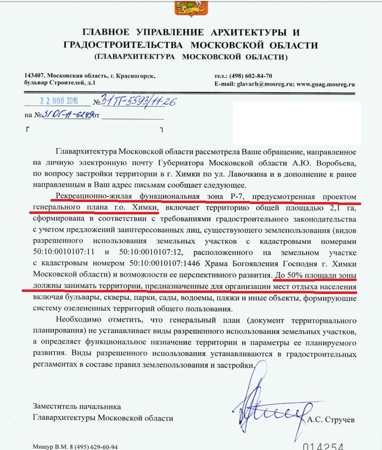 Последнее письмо из Главархитектуры Московской области, адресованное защитникам парка "Дубки", также подтверждает эту информацию.