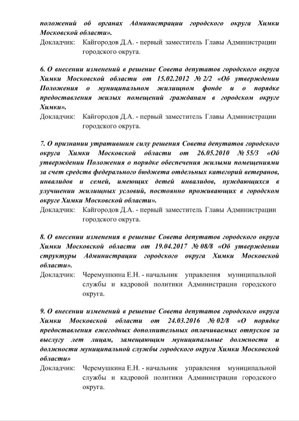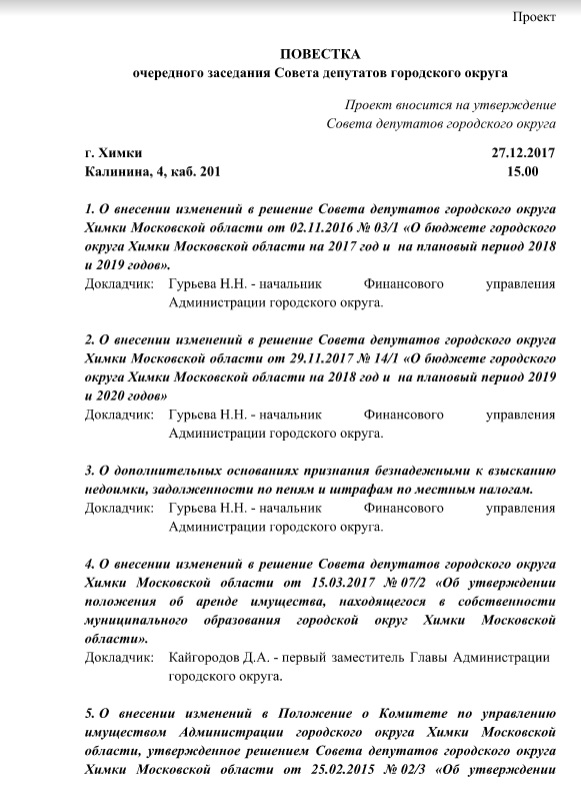 Публикуем предполагаемую повестку совета депутатов полностью: