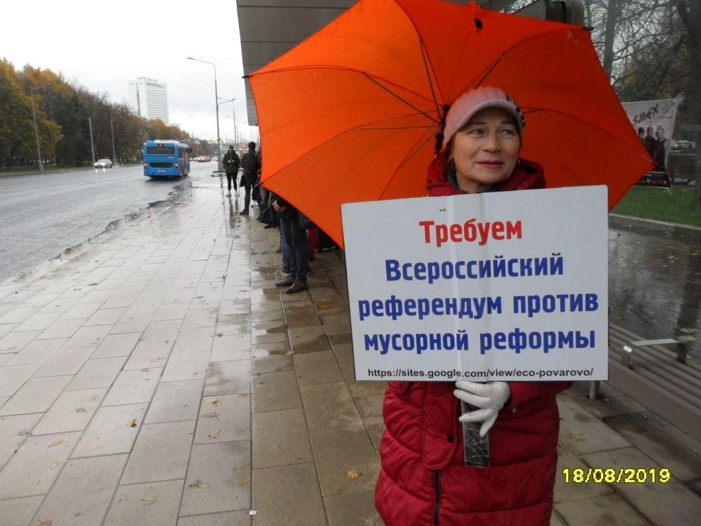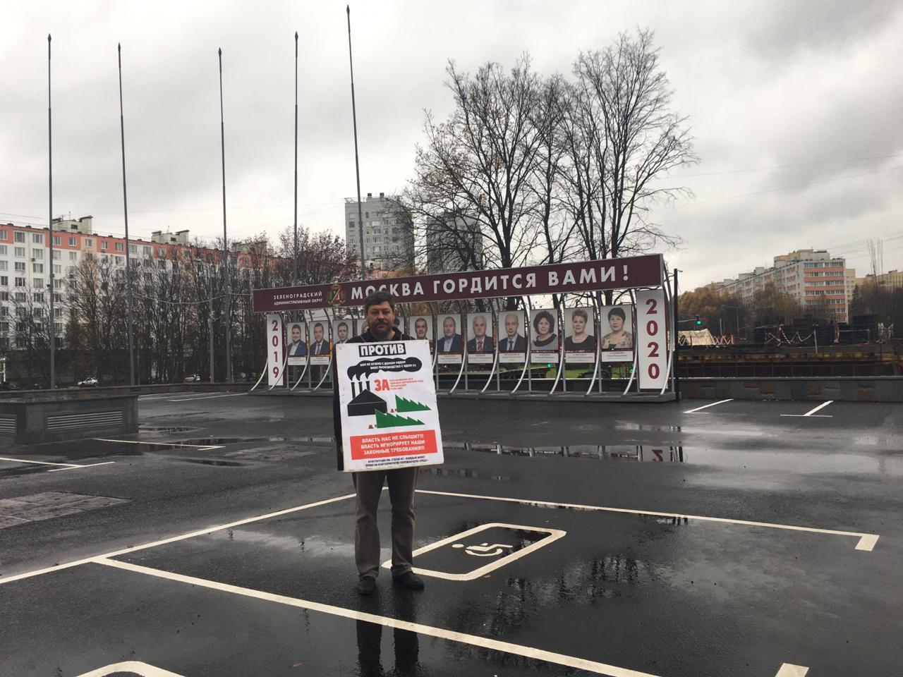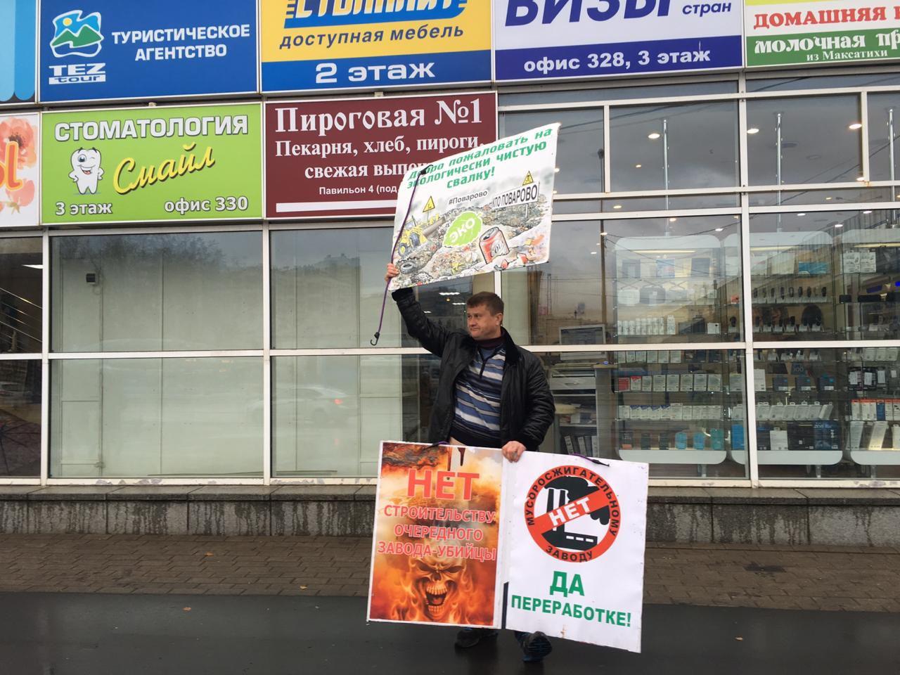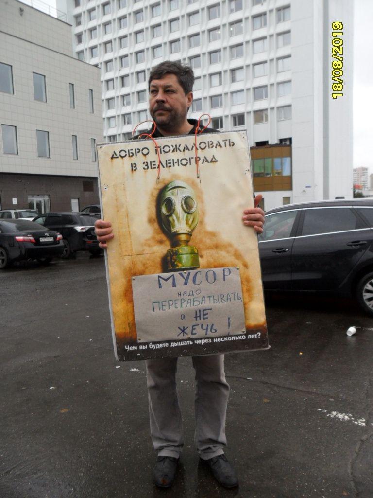 Сегодня в разных точках Зеленограда прошли одиночные пикеты против строительства мусоросжигательного завода и мусорного полигона.