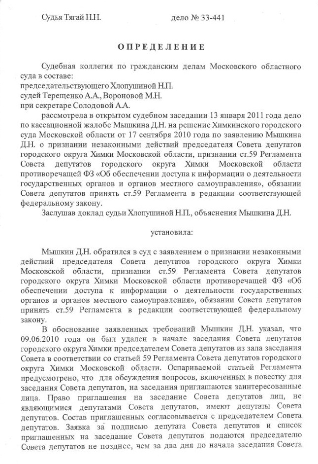 Из этого следует, что действия председателя по недопущению Мышкина на заседание признаны незаконными!