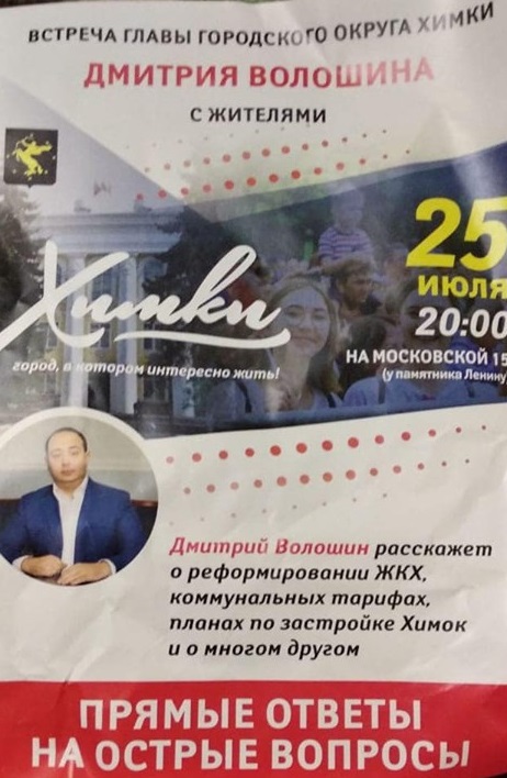 Из администрации г.о. Химки в "Экооборону" только что сообщили, что никаких встреч жителей с главой Дмитрием Волошиным не планируется. Кто распространил данные листовки и с какой целью - пока неизвестно.