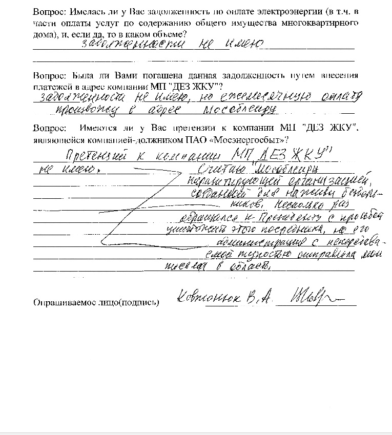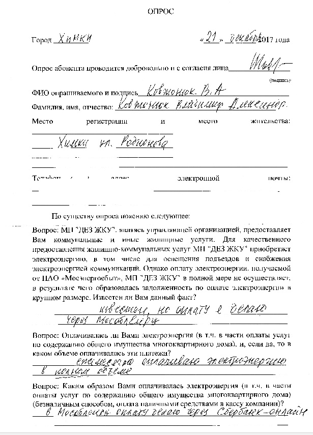 "Вот такие "опросники" (см. ниже) рассылает теперь от безысходности "Мосэнергосбыт", - рассказал "Экообороне" один из жителей ул. Родионова - Владимир Ковтонюк, получивший на днях очередное послание. - Похоже, они даже не знают, что теперь мы платим за электроэнергию в "Мособлеирц", эту паразитирующую контору - кормушку для чиновников. Непонятно также, почему химкинская администрация самоустранилась от решения этой проблемы, поставив под угрозу лишения электроэнергии жителей городского округа? Не исключаю, что "Мосэнергосбыт" решит пощекотать нервы наших жителей в новогодние праздники..."