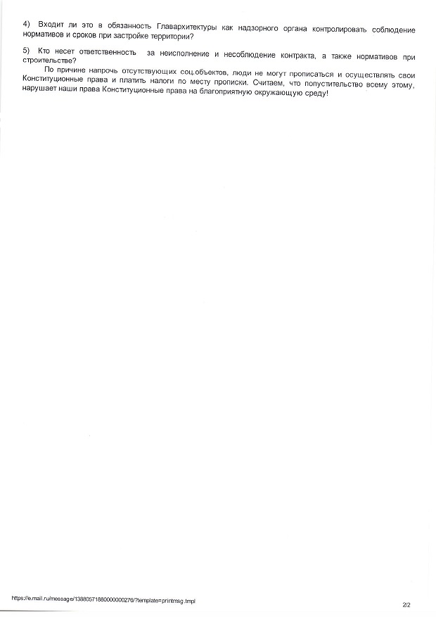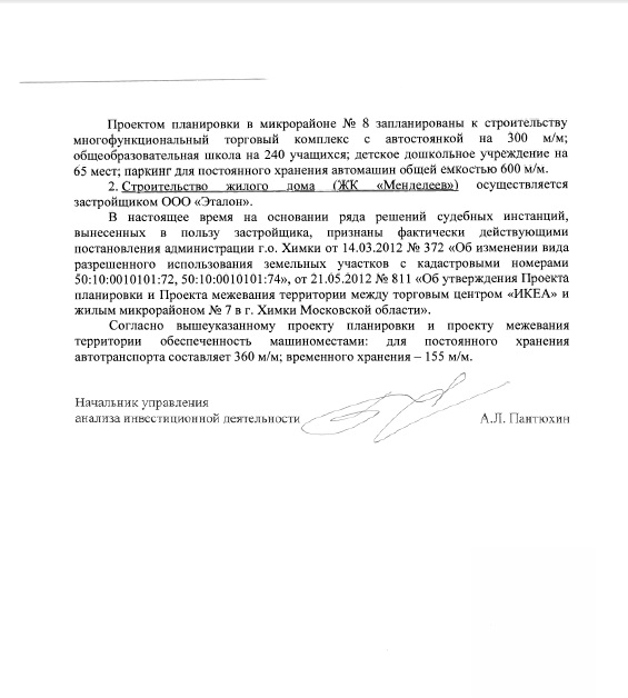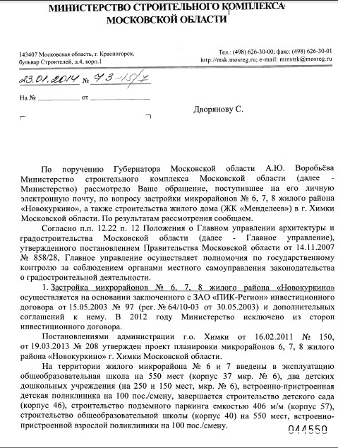 Напомним, ранее подобную возмутившую граждан отписку от Минстройкомплекса получили жители 5-го микрорайона. Не менее "удивительный" ответ прислало ведомство по незаконной застройке Ленинского проспекта в Старых Химках.