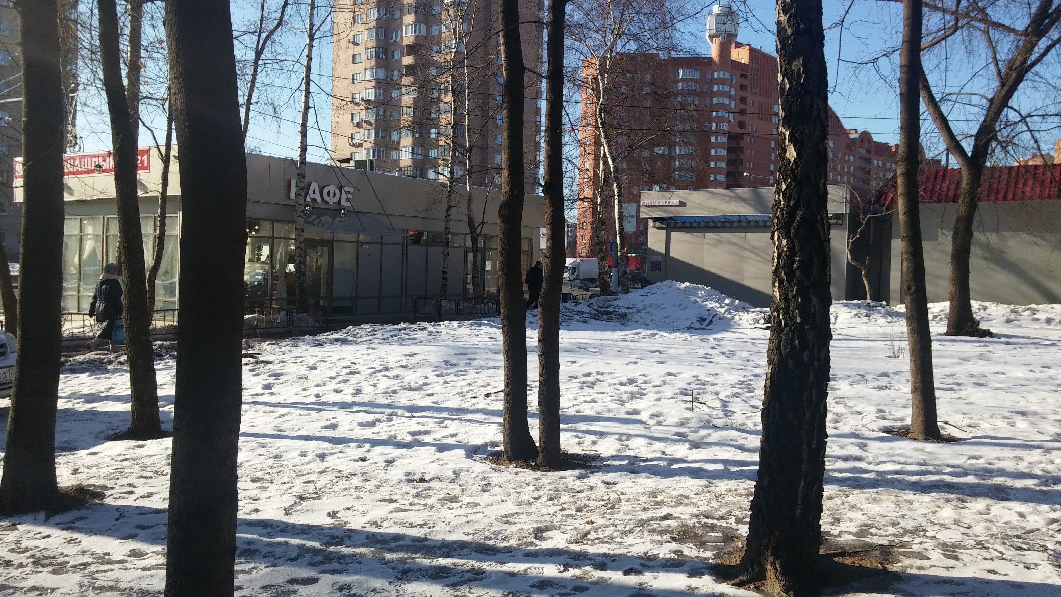 Напомним, что здесь плюс ко всему несколько дней назад были вырублены несколько деревьев для обустройства торговой палатки на придомовой территории.
