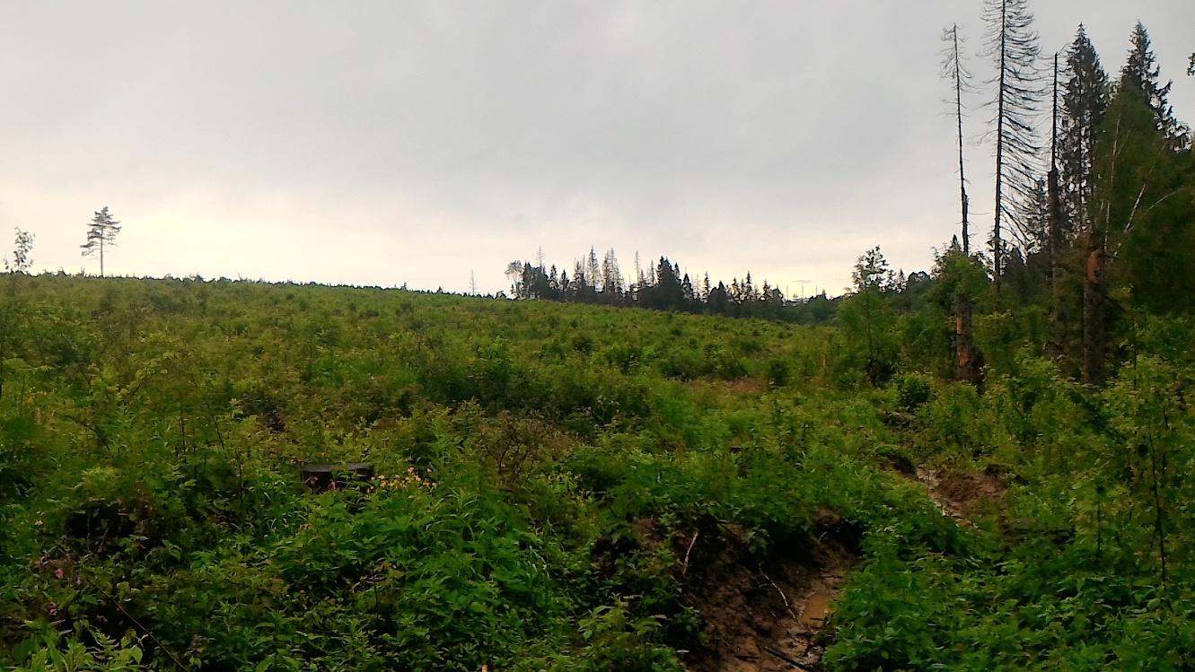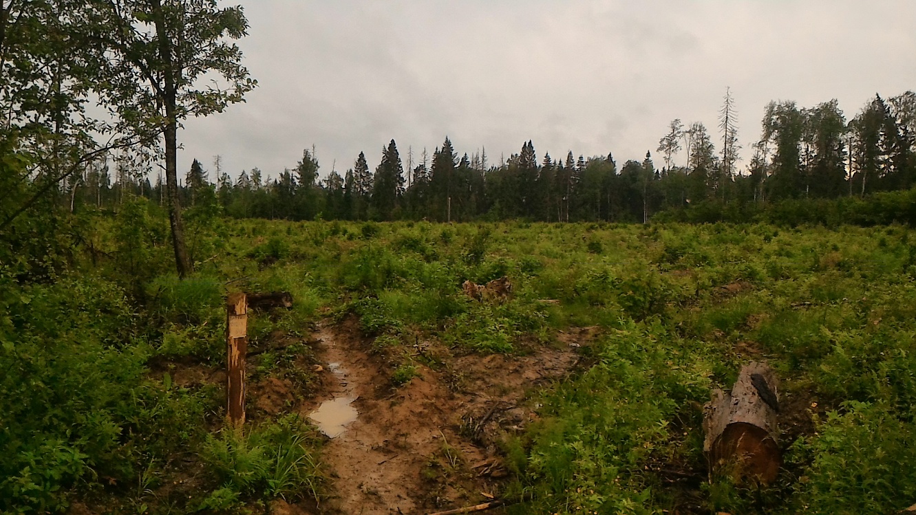На месте найдены саженцы для лесовосстановления, а также местами есть уже лесопосадки. Кроме того, обнаружена разметка в виде столбиков.