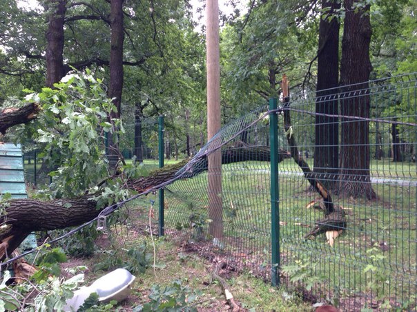 В парке им. Льва Толстого многие деревья, ветки и столбы были сломаны ветром, пишут химчане в соцсетях. Парк закрыли для "наведения порядка" - как сообщается, до середины дня 15 июля. Как себя чувствуют животные в контактном зоопарке - неизвестно.