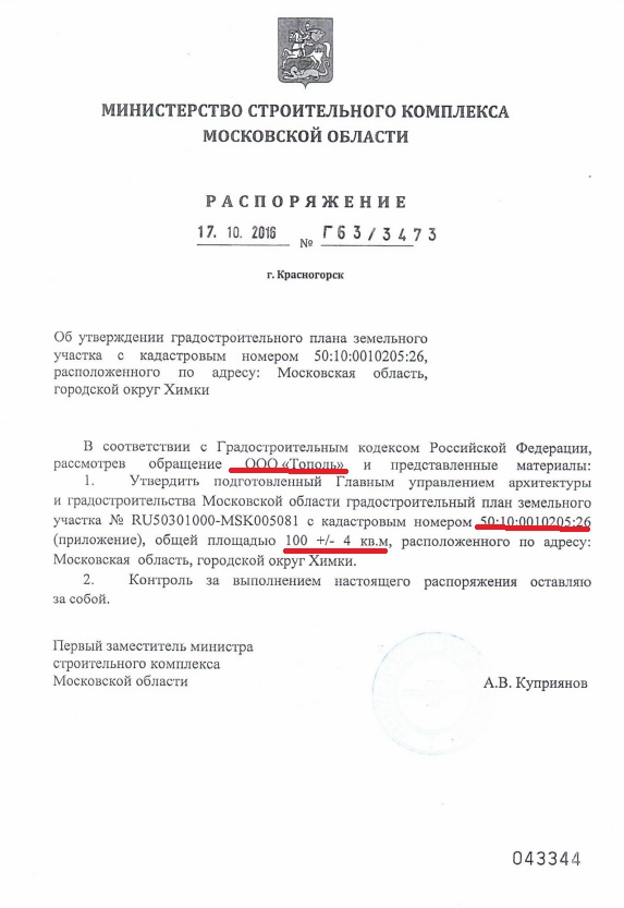 На сайте Министерства строительного комплекса Московской области появилось распоряжение об утверждении ГПЗУ на участок около дома 16 по ул. Московской в Химках. Участок площадью около 100 кв. метров, очевидно, собираются застраивать, чем - неясно. Документ выдан после "обращения ООО "Тополь" (видимо, это и есть застройщик).